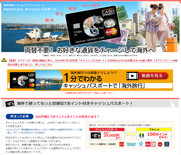 Tポイントが貯まる「海外旅行に!キャッシュパスポート」公式ページはこちら
